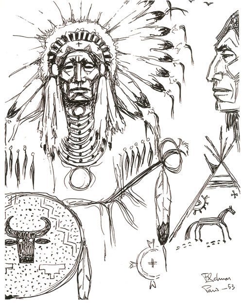 Sketch by Frithjof Schuon of Plains Indians, 1953. Found on p. 163 of