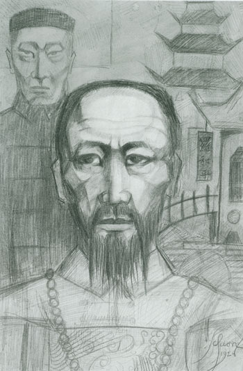 sketch by Frithjof Schuon of two Chinese mandarins, 1924. Found in IPMB, p. 198