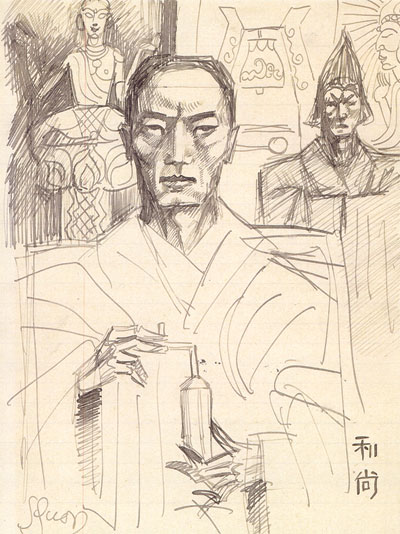 sketch by Frithjof Schuon of a Buddhist scene, c. 1928